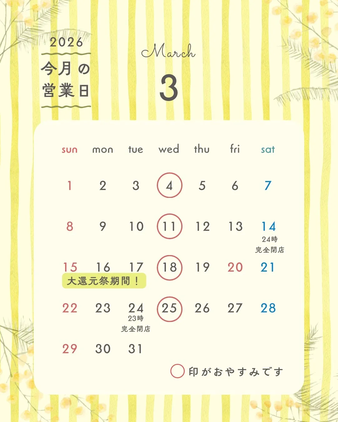 ↓3月の営業日カレンダー更新しました↓